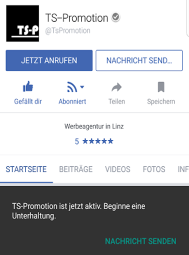 Dies ist praktisch die Aufforderung an alle User. Wenn Du etwas von der Firma wissen willst, schreib Ihnen jetzt gleich! Da ein Mitarbeiter des Unternehmens mit dem Account gerade online ist, ist die Wahrscheinlichkeit einer prompten Antwort sehr hoch. Mit einem Chatbot ist man klarerweise 24 h am Tag online, nebenbei steht bei der Reaktionsfähigkeit für Nachrichten „antwortet sofort“! Dies ermutigt User aktiv zu werden, da er mit einer Antwort rechnen kann!