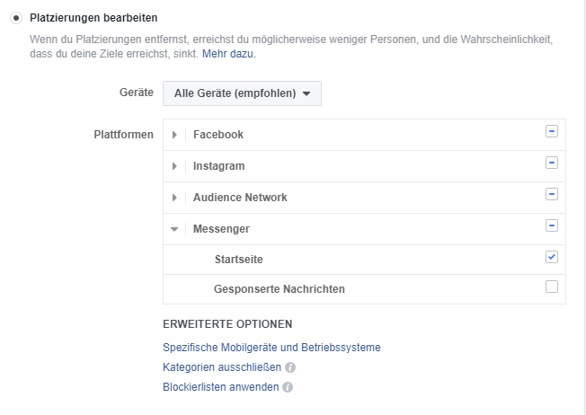 Hier werden Nachrichten in den Messenger von Personen, die sich in der eingestellten Zielgruppe, befinden, versandt. Allerdings nur an jene Personen, die bereits einmal mit unserer Seite via Messenger kommuniziert haben. Befinden sich in meinem Postfach gerade einmal zehn Nachrichten, wird es wohl keinen Sinn machen.