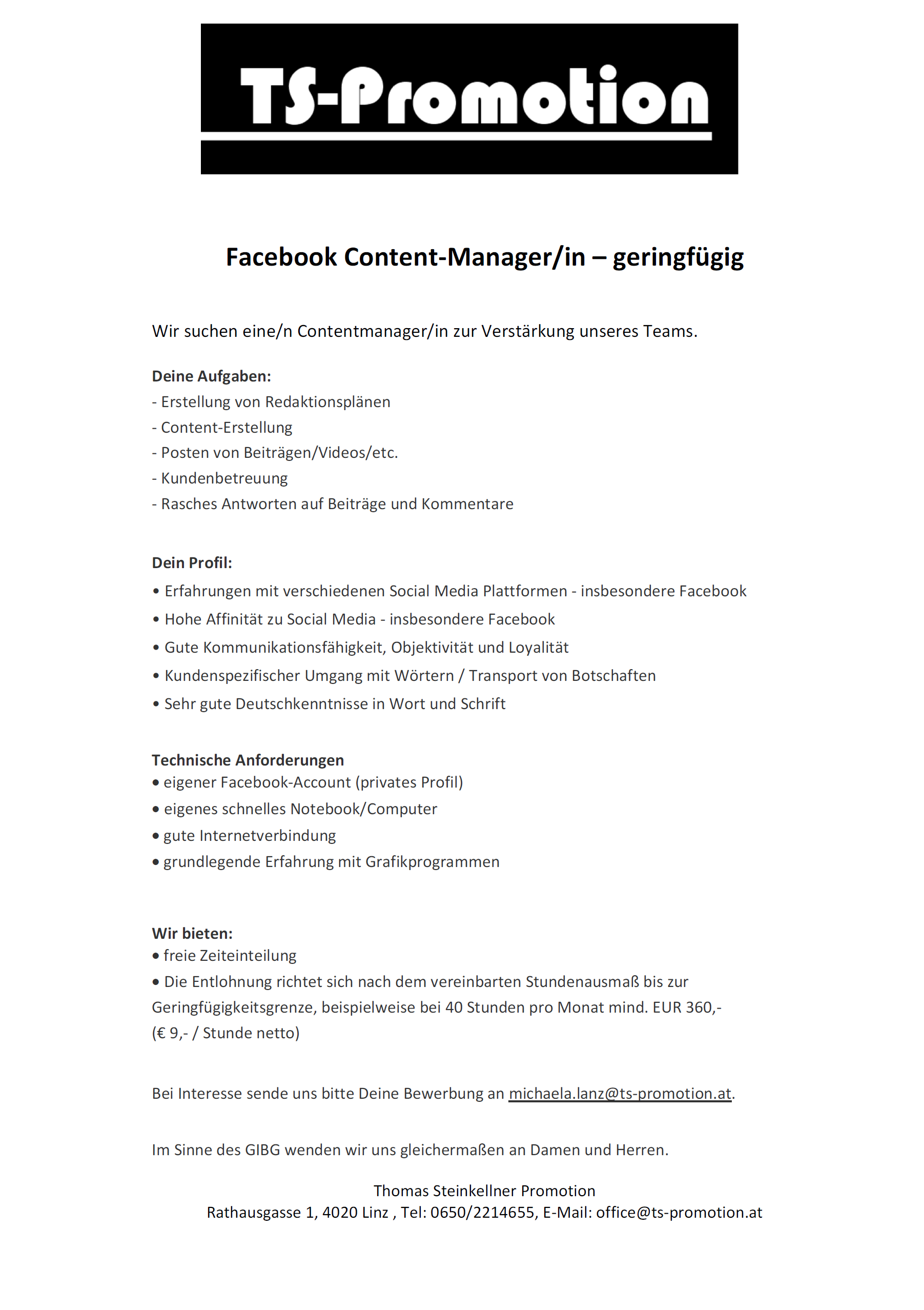 Startseite » Facebook Content-Managerin (geringfügig) gesucht